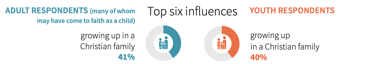 Of the top six influences for people becoming followers of Jesus, for both adults and young people – growing up in a Christian family was top. Top I tell you, TOP.